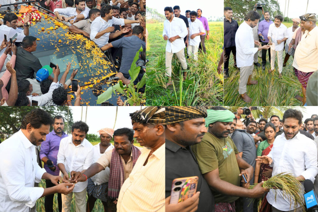 రాష్ట్రంలో రైతులు తీవ్ర నష్టాన్ని మిగిల్చిన మోంథా తుఫాన్ ప్రభావిత ప్రాంతాల్లో వైఎస్సార్సీపీ అధ్యక్షుడు, మాజీ సీఎం వైఎస్ జగన్మోహన్రెడ్డి మంగళవారం పర్యటించారు. కృష్ణా జిల్లా రామరాజుపాలెం, ఆకుమర్రు, సీతారామపురం, బీవీ తోట ఎస్.ఎన్. గొల్లపాలెంలో జగన్ పర్యటించారు. ఈ సందర్భంగా