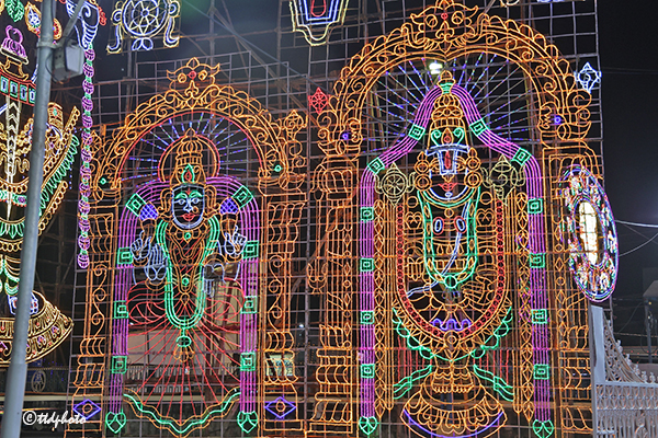 తిరుపతి : శ్రీనివాస మంగాపురం శ్రీ కల్యాణ వేంకటేశ్వర స్వామి వారి వార్షిక బ్రహ్మోత్సవాల్లో భాగంగా టీటీడీ చేపట్టిన విద్యుత్ కాంతులు, పుష్పాలంకరణలు భక్తులను విశేషంగా ఆకట్టుకుంటున్నాయి. శ్రీనివాస మంగాపురం పరిసర ప్రాంతాలు, జాతీయ రహదారులు, ప్రధాన కూడళ్లలో ఏర్పాటు చేసిన