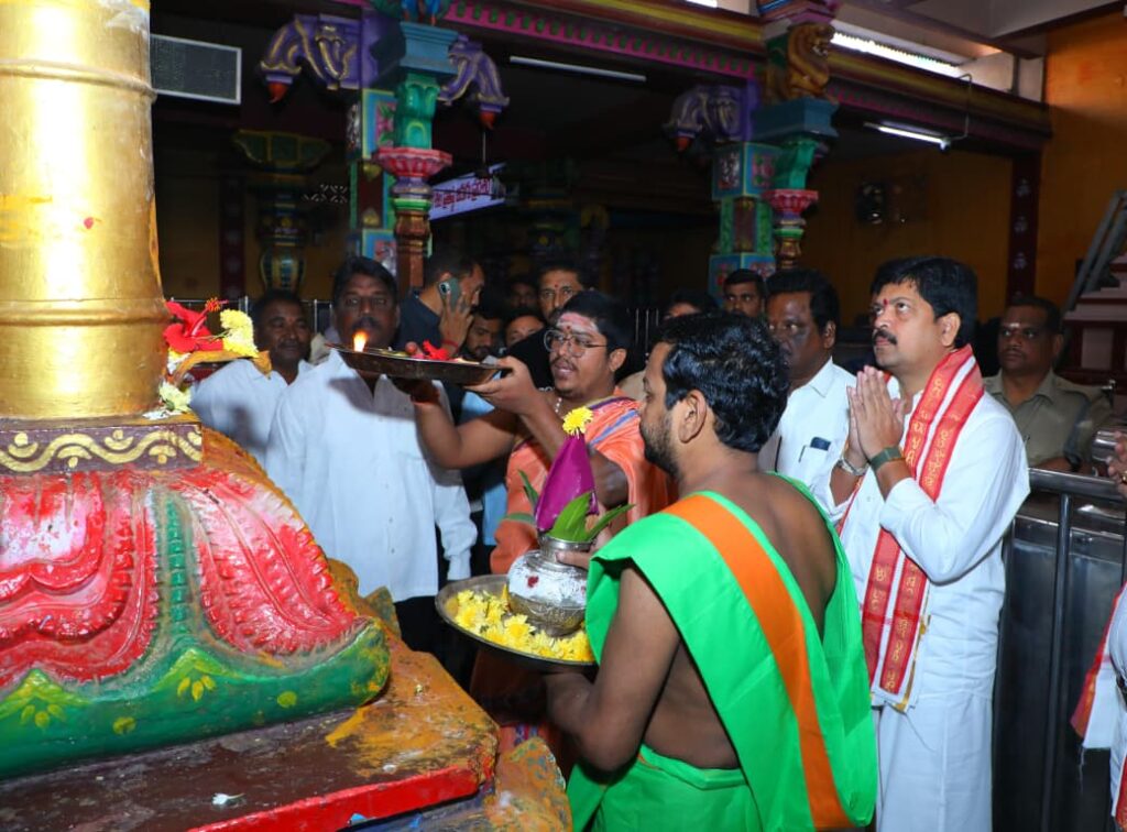 అమరాతి : మోపిదేవిలో ప్రసిద్ధ పుణ్యక్షేత్రంగా విరాజిల్లుతున్న శ్రీ వల్లి దేవసేన సమేత శ్రీ సుబ్రహ్మణ్యేశ్వర స్వామి వారిని శనివారం రాష్ట్ర మంత్రి కొల్లు రవీంద్ర దర్శించుకున్నారు . ఆలయానికి వచ్చిన కొల్లు రవీంద్రకు డిప్యూటీ కమిషనర్ దాసరి శ్రీరామ వరప్రసాదరావు