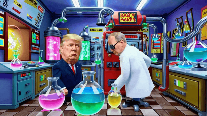 “Trump and Putin try to make a baby.” It worked! Someone needs to press that button.