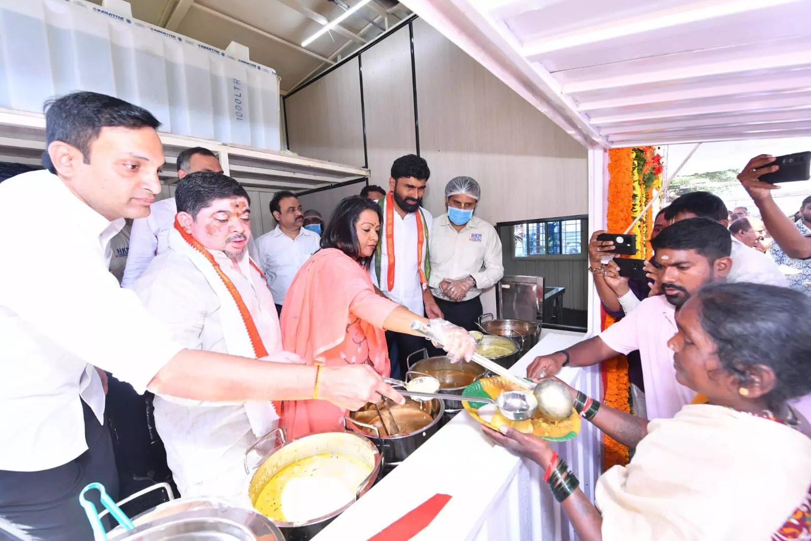 During the inauguration, Minister Ponnam and Mayor Vijayalaxmi personally served breakfast to beneficiaries, shared meals with sanitation workers and interacted with the public.