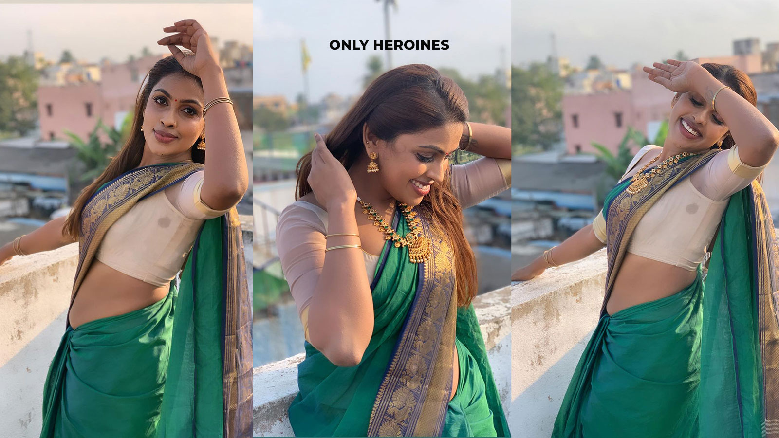 Tamil film actress and model Srinikha is gorgeous In a Green Saree photos