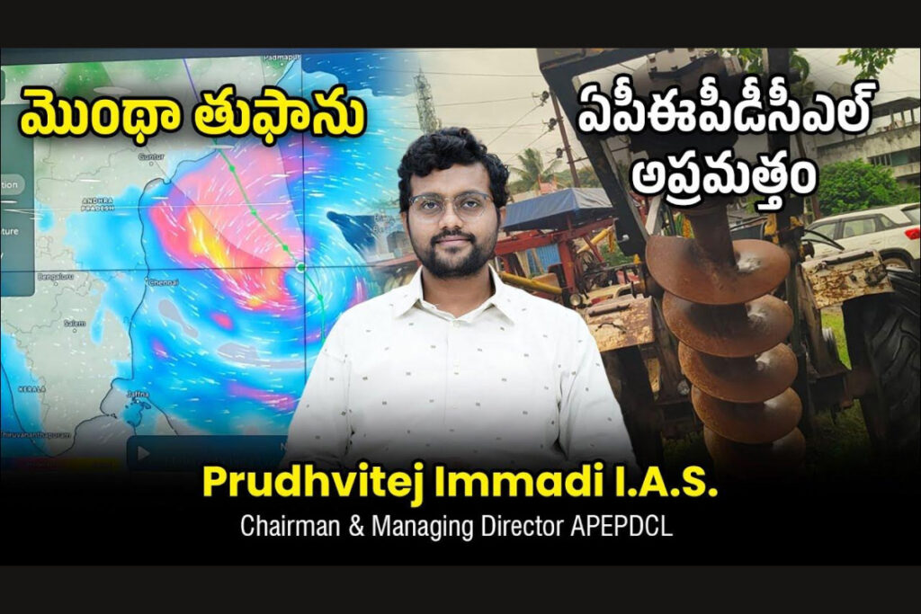 మొంథా తుపాను కారణంగా దెబ్బతిన్న విద్యుత్తు సరఫరా వ్యవస్థను యుద్ధప్రాతిపదికన పునరుద్ధరిస్తున్నామని ఏపీఈపీడీసీఎల్ సీఎండీ పృథ్వీతేజ్ తెలిపారు. బుధవారం కోనసీమ జిల్లాలో పర్యటించిన ముఖ్యమంత్రి చంద్రబాబుకు విద్యుత్‌ పునరుద్ధరణ చర్యల పురోగతిని ఆయన వివరించారు. అన్ని సెక్షన్ కార్యాలయాలకు జనరేటర్లు,