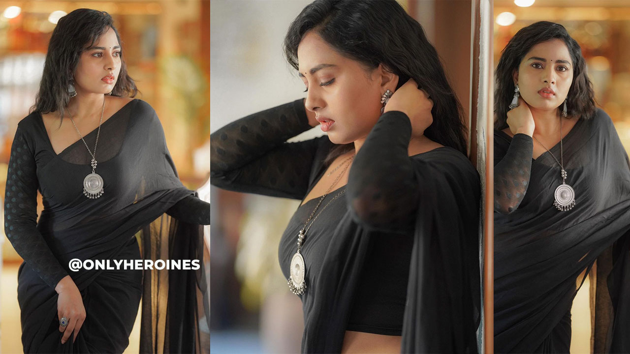 Gorgeous Actress Srushti Dange Black Saree Photos :